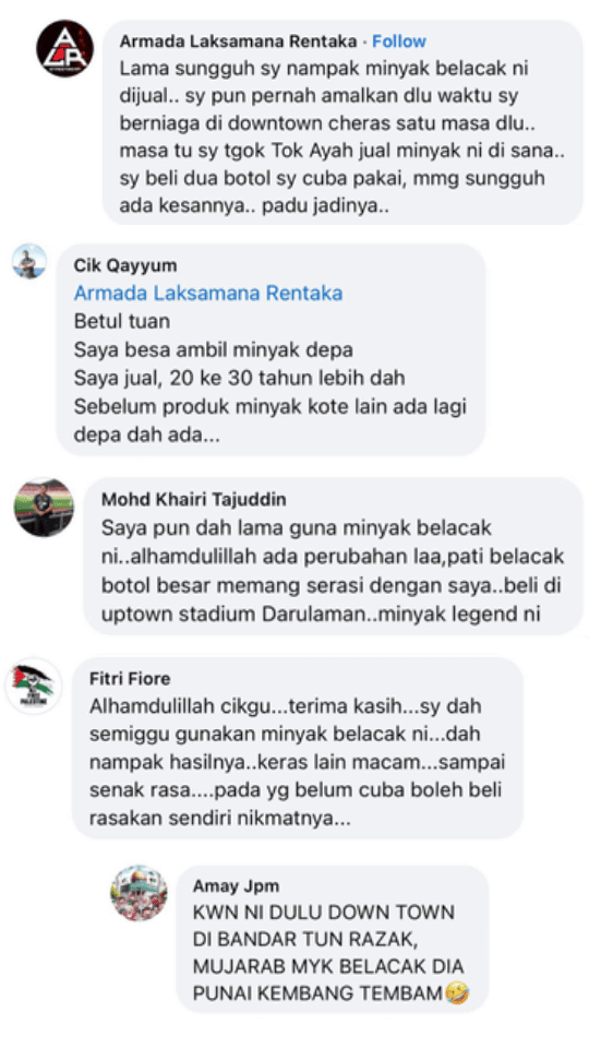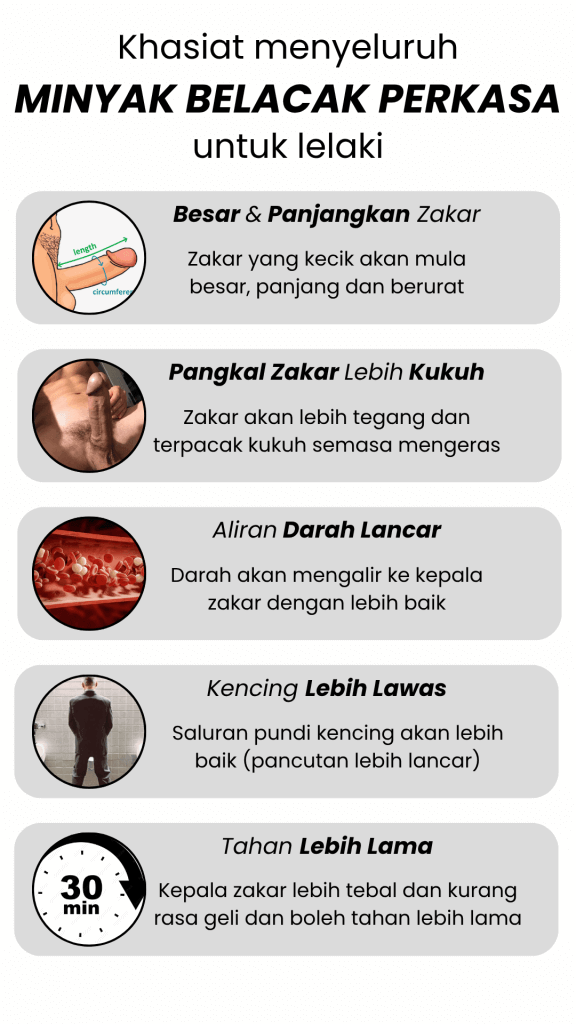 -Tiada kesan sampingan berbahaya kerana minyak hanya digunakan untuk luaran sahaja.